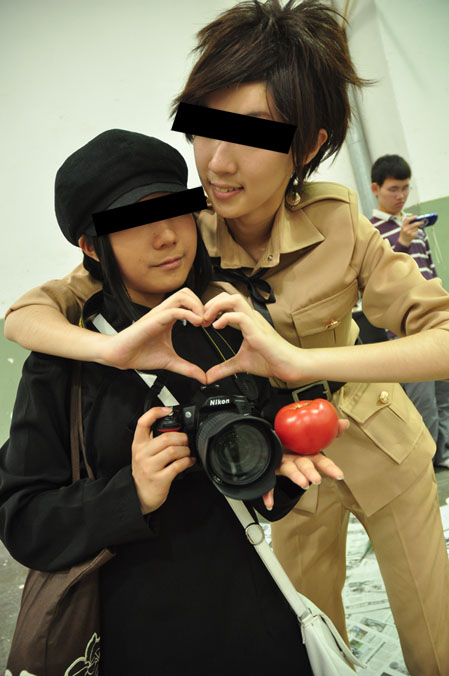 其实记忆到这里几乎已经完全混乱了,脑子当时已经不太清楚了,总有一种明明还有好多事情没做完却又想不起来的感觉。后来给我的半小时闲逛时间基本就是去看鹰子和阿纯他们了。这里有个小囧的事情。有个挺萌的18女体妹子,其实我倒是真的还挺喜欢她的,可是她非要拉着阿纯搅基一般的合影,说真的阿纯都已经不愿意了,反正现场大概挺搞笑的就跟老鹰捉小鸡一样阿纯抓在我后面那妹子在逮阿纯。现在想想……哇靠我怎么都是现在想想我到底是有多事后诸葛亮啊!反正如果当时脑子够清醒的话也许可以处理得更好,也许那妹子真的没看出来我的阻止是带着官方成分的说起来STAFF的标志果真不够显眼么因为没有写NPC么……其实我的理智神经真的差一点就要崩开了。爆粗什么的我还真不愿意,何况还是对一个萌妹子,但是也许再这么下去一点点时间我就要真的隼人一般开始不良少年了。不过说起来如果是隼人的话根本不会阻止吧……?什么山本武回家跪键盘之类的或者是“啊你去好啦老子又不需要你你又不是我的谁”这种听起来很撒鼻息的话,才像是隼人呢。